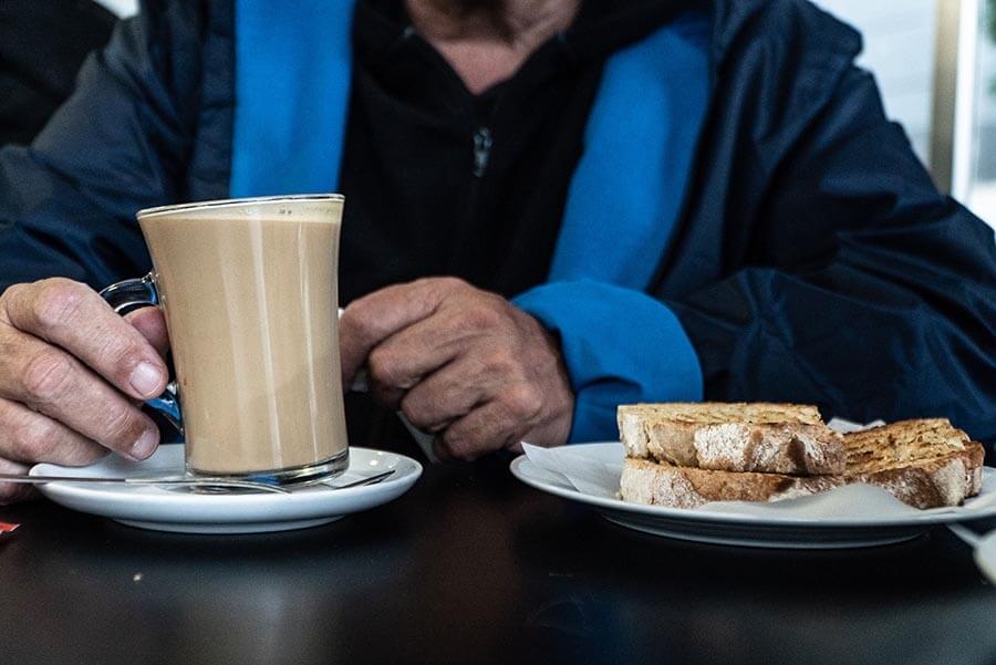 Tomo o pequeno-almoço no Aramis, sempre a mesma coisa: uma torradinha de pão saloio e um galão ou uma meia de leite. Não pode ser um pequeno-almoço à rico. Depois, vou fazer a minha caminhada no Parque do Covelo e vejo as notícias. À terça, à quarta e à quinta, a Beatriz vem almoçar, à segunda, a Cristina está de folga e tenho o dia todo ocupado, vamos para aqui e para acolá.